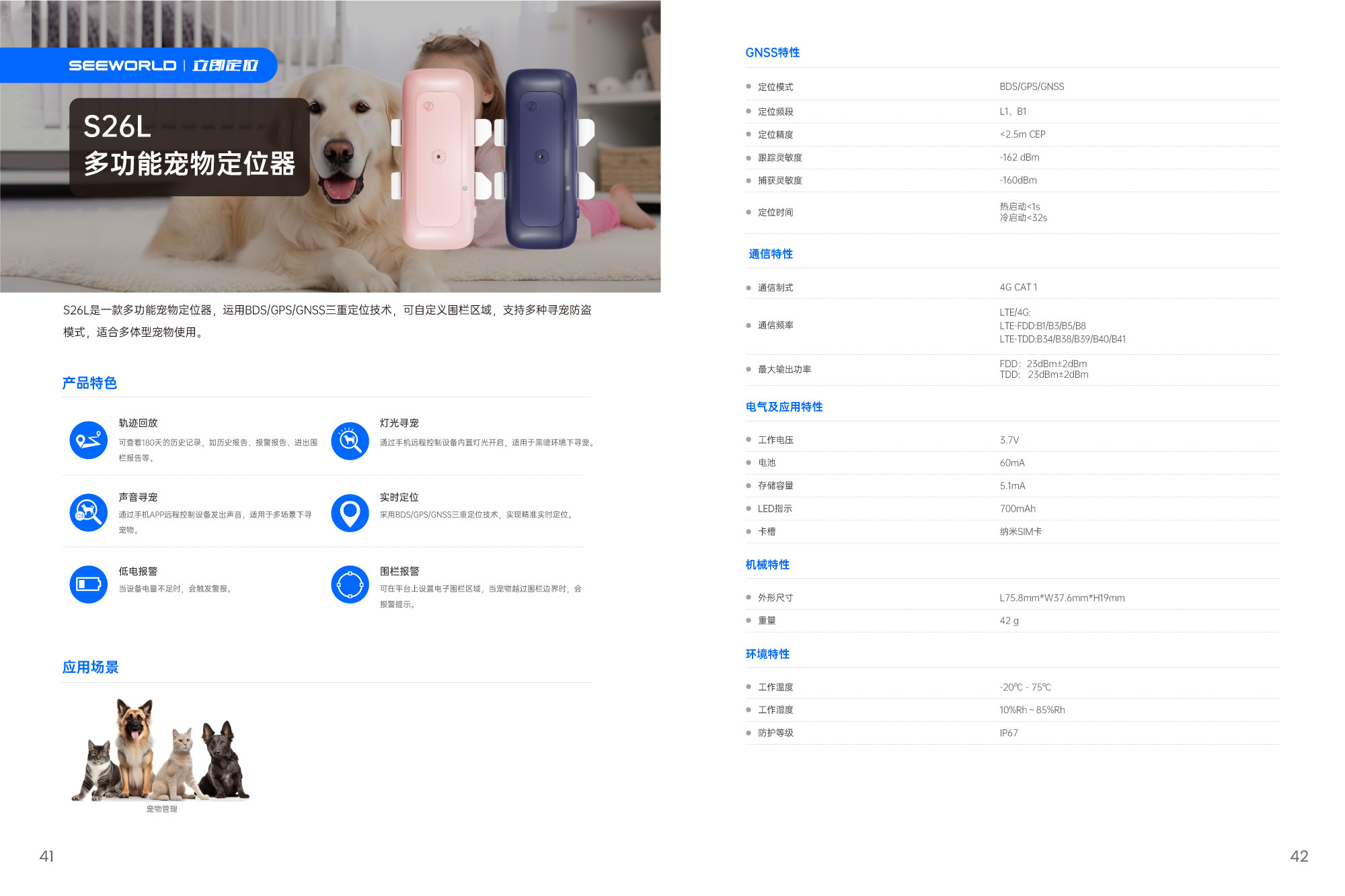 通過手機遠程控制設備內置燈光開啟,適用于黑暗環境下尋寵。