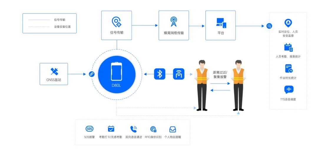 ·SOS一鍵求助: 外勤人員遭遇緊急情況(如受傷、受困)時,通過佩戴的智能電子工牌可一鍵觸發(fā)SOS報警,平臺即時收到求救信號和精確位置,為應(yīng)急救援爭取黃金時間。